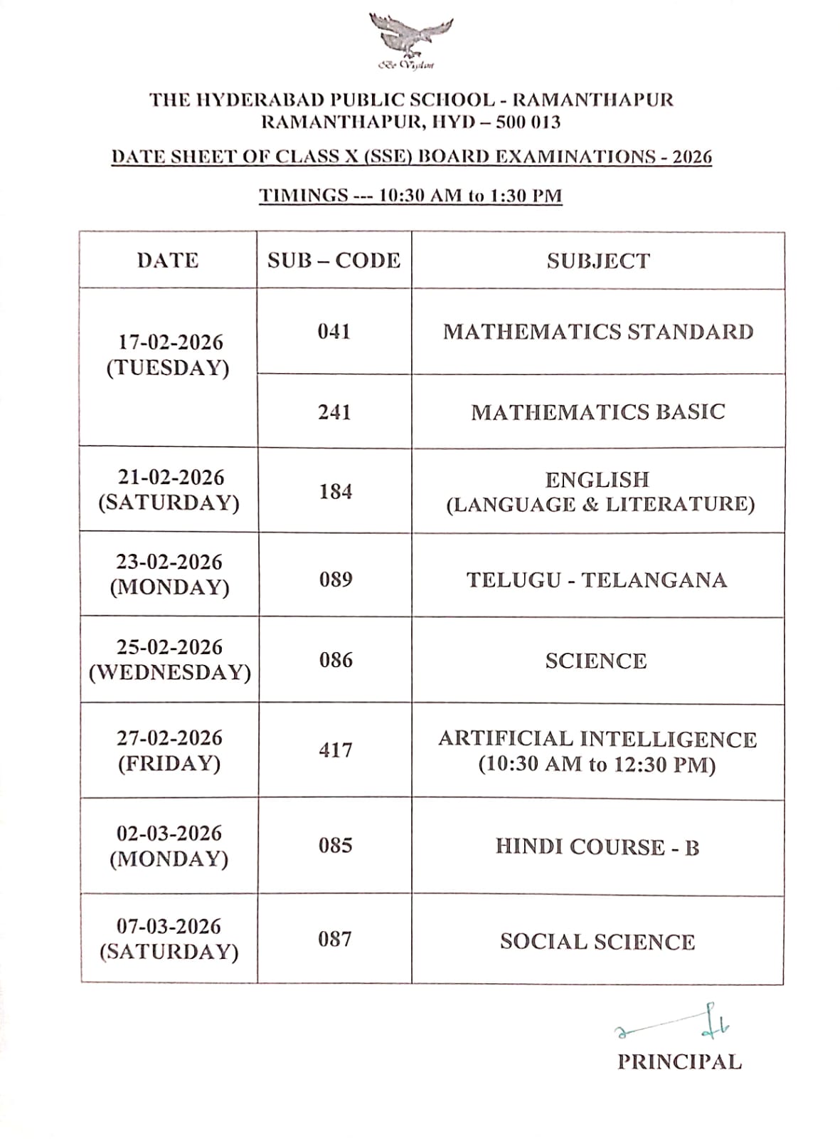 | CBSE Board Examination Date Sheet for Class 10 | Click Here |