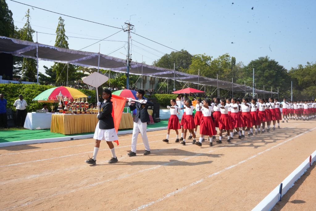 The Hyderabad Public School, Ramanthapur celebrated its 46th Annual Sports Day on 15th November 2025 with great spirit and splendour. The day began with the lighting of the sports flame, a synchronized march past, and the oath-taking ceremony. The campus resonated with vibrant drills, artistic displays, and a stirring performance by the school’s newly trained brass band, whose professional harmony added grace and glory to the occasion—truly another feather in the cap for HPS Ramanthapur. Principal Dr. Narasimha Reddy delivered a warm and inspiring welcome address, setting the tone for the day.