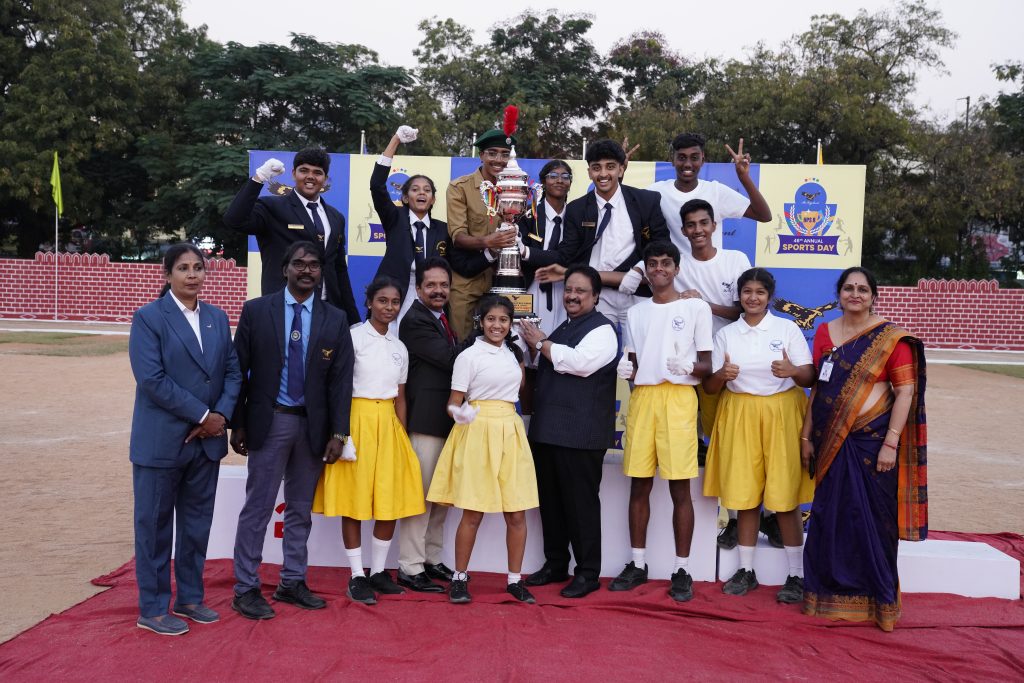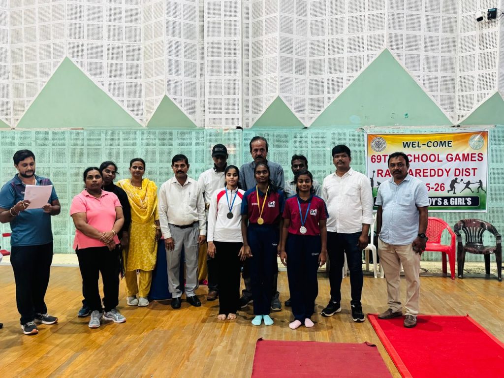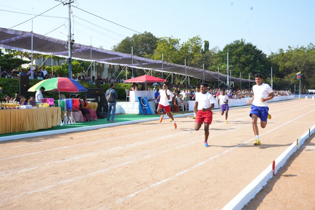 The event was graced by the Chief Guest, Mr. A.P. Jithender Reddy, Advisor to the Government of Telangana for Sports Affairs, who praised the students’ performances as outstanding and deeply inspiring. He emphasized that sports are not merely about medals and trophies, but about shaping character, building confidence, and nurturing future leaders. Every race won, he remarked, marks a step forward in a child’s life. He highlighted how sports empower even those who may not shine academically, instilling teamwork, self-belief, and a spirit of achievement. Appreciating the school’s excellent infrastructure and standards, he thanked the Honourable Chief Minister for promoting a strong sporting culture in the state and expressed his vision of providing world-class sports facilities and opportunities for students to shine at the state, national, and international levels.
