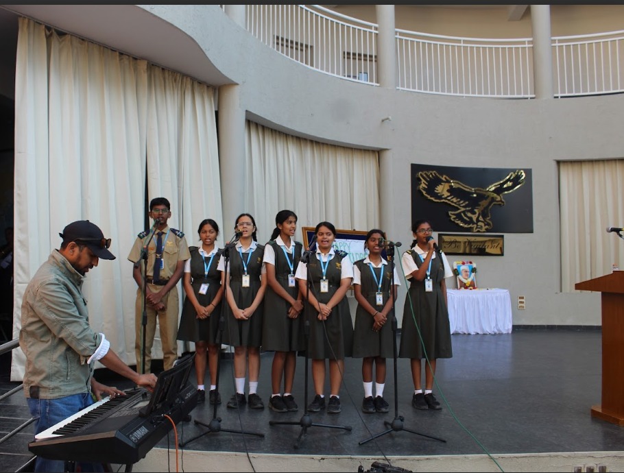 Teachers’ Day was celebrated with joy and gratitude on September 5. The day began with teachers conducting the morning assembly, followed by Archana and Dhruv compering the programme. Cultural highlights included a soulful Guru Vandana, a lively Fishermen’s Song, a Class 12 dance, and a western musical by the school band. A special moment came when Head Girl Ms. Raaga Pranavi took on the role of “Principal for the Day.” Principal Dr. S. Narsimha Reddy later shared an inspiring message. Students of Classes 6 to 8 also made greeting cards for their teachers, making the celebration truly memorable.