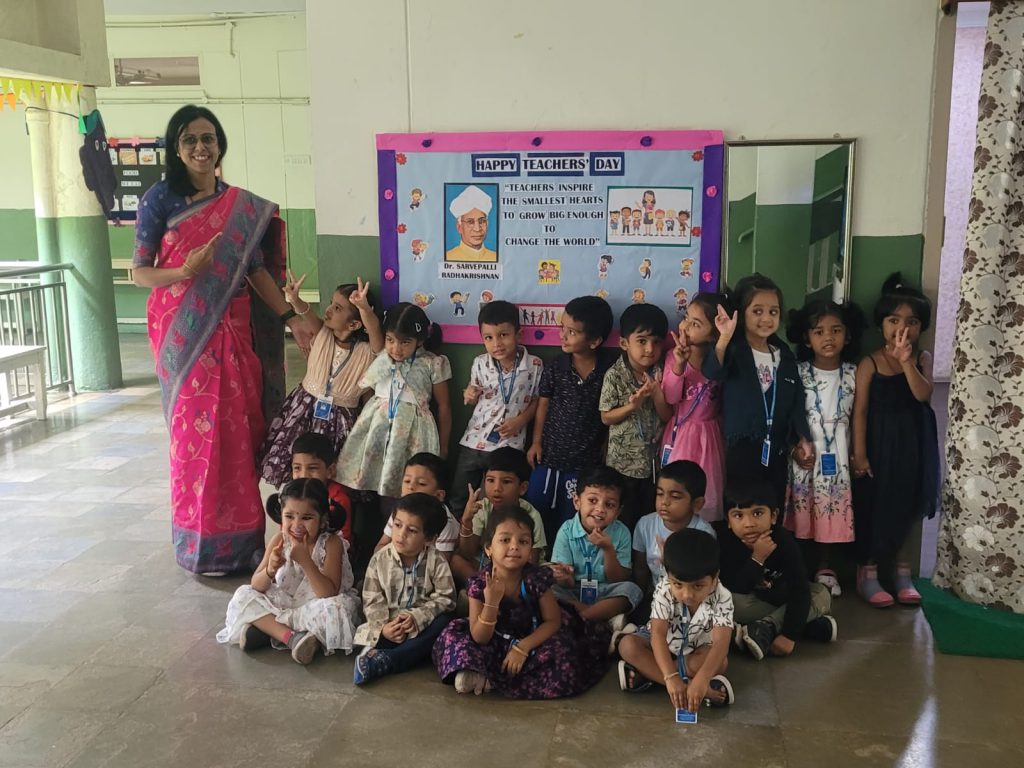 Teachers’ Day was celebrated with joy and gratitude on September 5. The day began with teachers conducting the morning assembly, followed by Archana and Dhruv compering the programme. Cultural highlights included a soulful Guru Vandana, a lively Fishermen’s Song, a Class 12 dance, and a western musical by the school band. A special moment came when Head Girl Ms. Raaga Pranavi took on the role of “Principal for the Day.” Principal Dr. S. Narsimha Reddy later shared an inspiring message. Students of Classes 6 to 8 also made greeting cards for their teachers, making the celebration truly memorable.